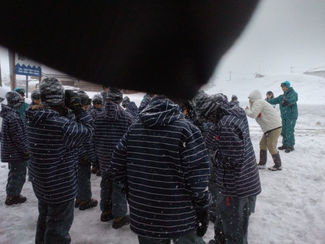 スキーウェアに着替えこれから雪遊ひを始めます。