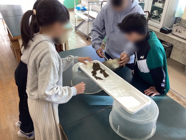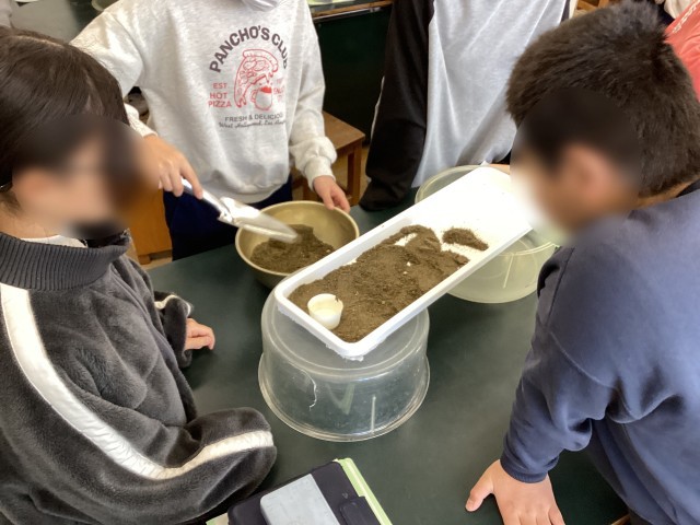 5学年の理科では、流れる水のはたらきがどのように土地のつくりと関わっているかについて学習しています。今回は川を再現するための土地をつくりました。次の時間に、川を再現します!