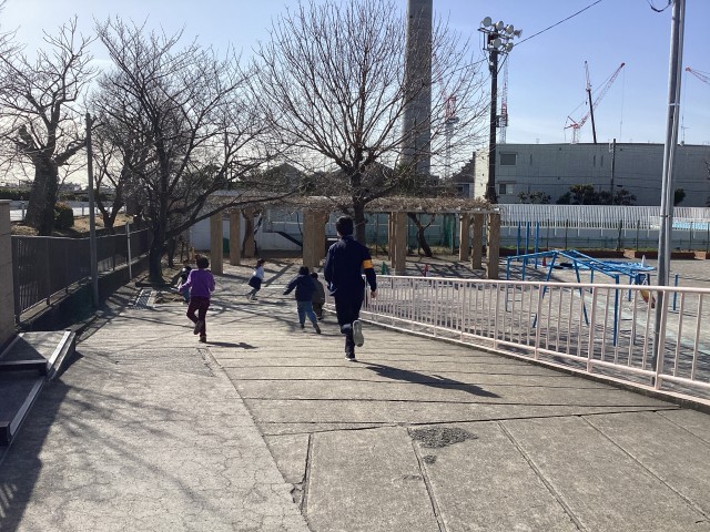 中休みに、チャレンジ・ザ・ドリームで来ている中学生と校庭で鬼ごっこを楽しみました。