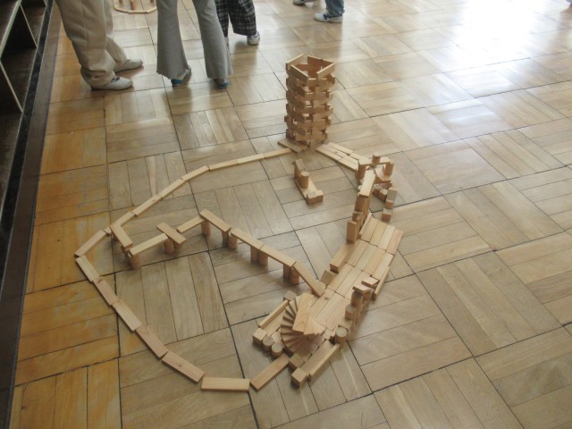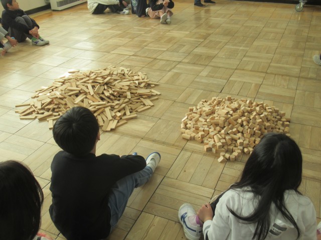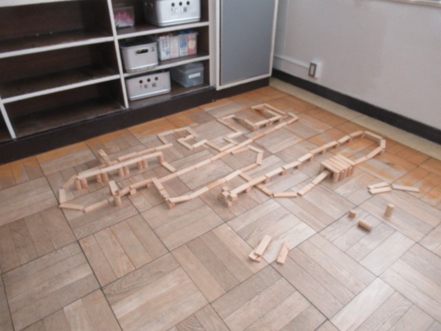 小さな積み木をつなげて、のばして、形を作りました。