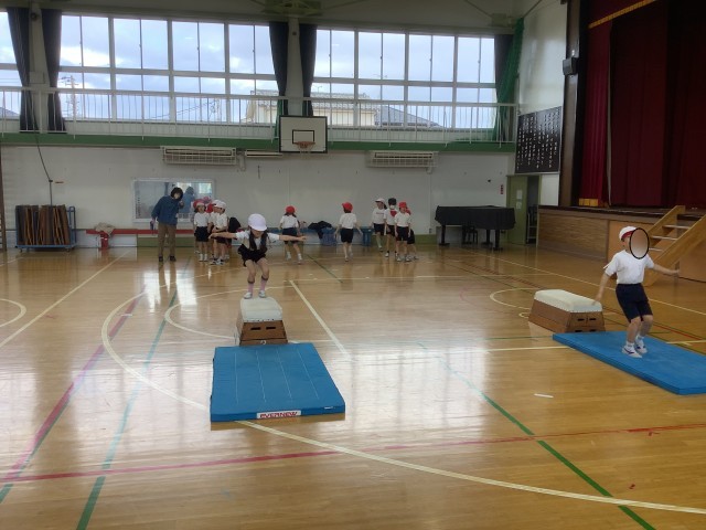 体育では跳び箱の学習をしています。