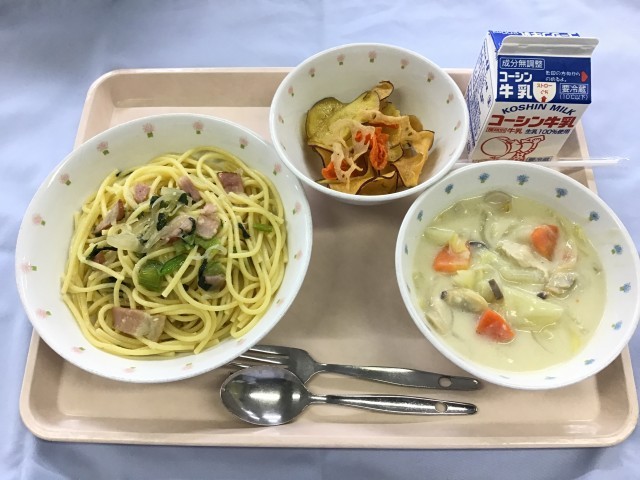 6年生のリクエスト給食「小松菜ペペロンチーノ」を提供しました。