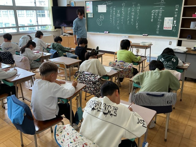 自己紹介では自分の好きなことや4年生で頑張りたいことを自己紹介カードに書きました。