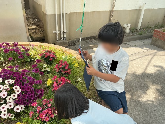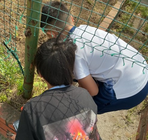 3学年の理科では、自然観察を行なっています。今回は、植物や昆虫を虫メガネで見たり、タブレット端末で写真を撮ったりしました!