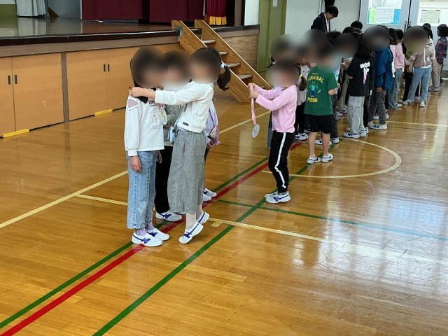 今回のなかよし班活動では、1年生を迎えました。2年生が作ったメダルと育てたアサガオの種を1年生にプレゼントしました!