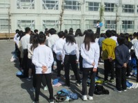 真っ暗な体育館の中で、2人組で協力しながら実験を行い、月の形が日によって変わる訳を体感しました。