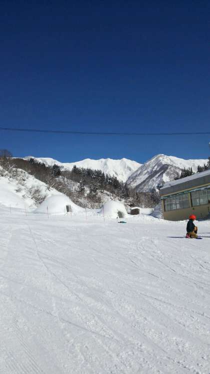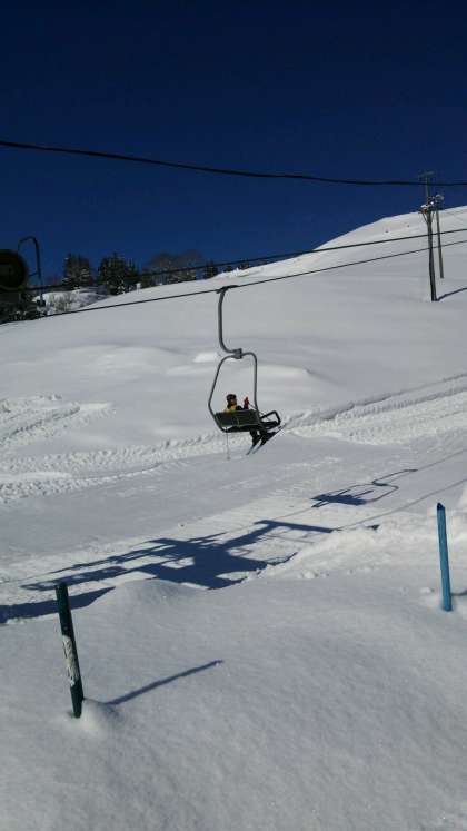 上級コ—スから徐々にリフトに乗って山頂へ向かいます。今日の冬山の姿は素晴らしいです。現地の方も絶賛。