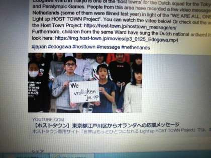 オランダのホストタウンである江戸川区ですが、本校児童の応援の様子が、在オランダ日本大使館のFaceBookに取り上げられています。(2/16付)