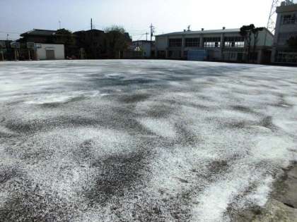 校庭整備 公開日 2021/04/15 更新日 2021/04/15 学校日記 年度の開始に当たって、校庭を整備しました。 凸凹だったところが平らになり、使いやすくなりそうです。 写真は、校庭の砂を圧縮した後、凝固剤を使って固めているところです。