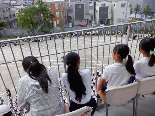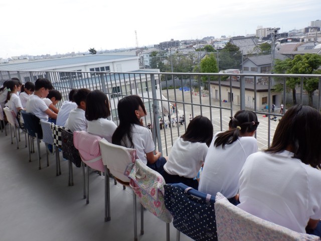 安全のための「柵には触らない」などの約束をしっかりと守り、他学年の競技を見ることができました。