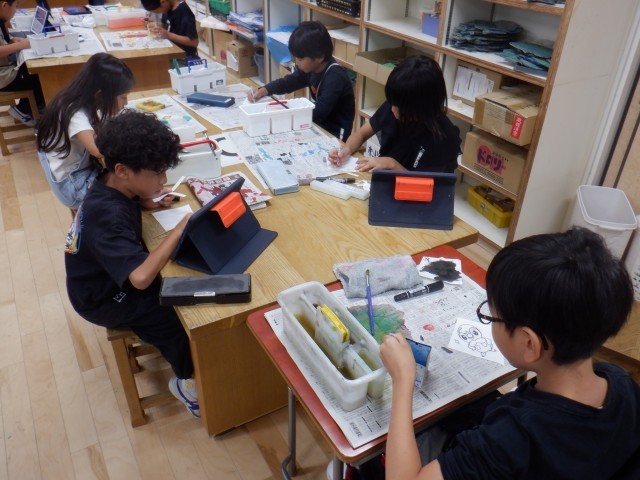 【3年生】副籍交流がありました! 公開日 2025/10/11 更新日 2025/10/10 できごと 10月9日(金)に、3年3組で副籍交流がありました。今回は図工室で一緒に凧の染色に取り組みました!「次は、一緒に〇〇したい!」という声も上がり、親睦を深めています! 1年生 2年生 3年生 4年生 5年生 6年生 音楽科 図画工作科 外国語 家庭科 保健 給食 校内研究 農園活動 PTA 学校応援団 学校版もったいない運動