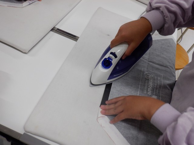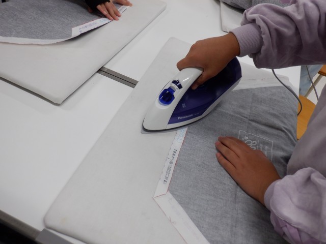 5年生はエプロン制作に向けて、アイロンかけの練習をしました。