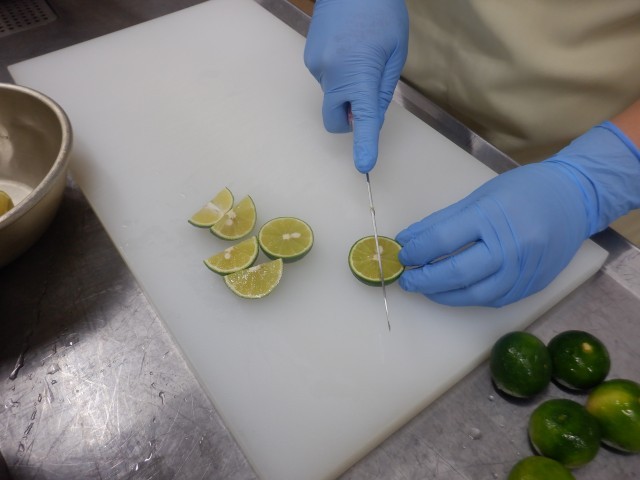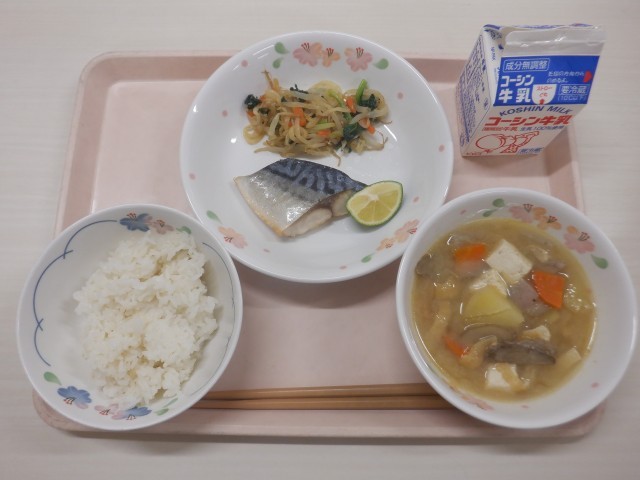 今日のサバの文化干し焼きには、秋に旬を迎える「すだち」を添えました。昔はお酢の代わりとして使用されていたほど酸味の強い果汁が特徴です。魚にかけることにより、さっぱりと食べることができ、すだちの香りも楽しむことができます。子供は酸味が苦手とよく言われますが、自分自身でしぼって食べる酸味は格別の味わいだったようです。