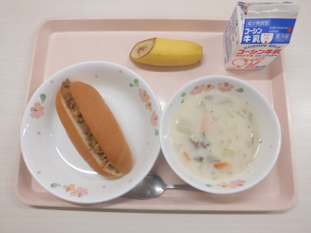 今日は就学時健康診断でしたので、配膳しやすい献立を提供しました。片づけもしやすいよう、2枚食器です。
