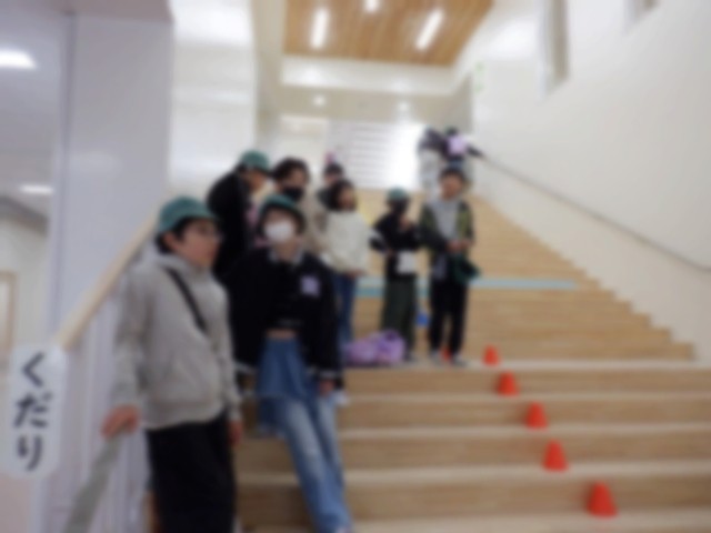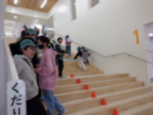 大階段に立って、朝のあいさつをしています。