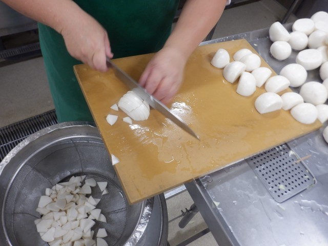 読書献立2日目、今日は「おおきなかぶ(A.トルストイ再話/内田莉莎子訳/佐藤忠良画/ロシアの昔話)」より「おおきなかぶの豆乳スープ」の登場です。スープの中に、かぶをたくさん入れて作りました(写真2)。このお話は小学校一年生の国語の教科書にものっています。