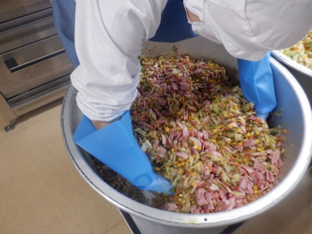 今日の読書献立は「サラダでげんき(角野栄子 作・長 新太 絵/福音館書店)」より「りっちゃんのサラダ」の登場です。りっちゃんと動物達が、一緒にサラダを作るお話です。このサラダは食べるとたちまち元気が出るサラダなんだとか。給食室でも絵本の中に出てくる食材を全て使用し、忠実に再現しました。