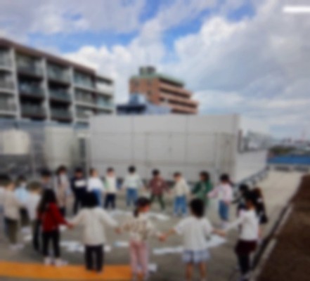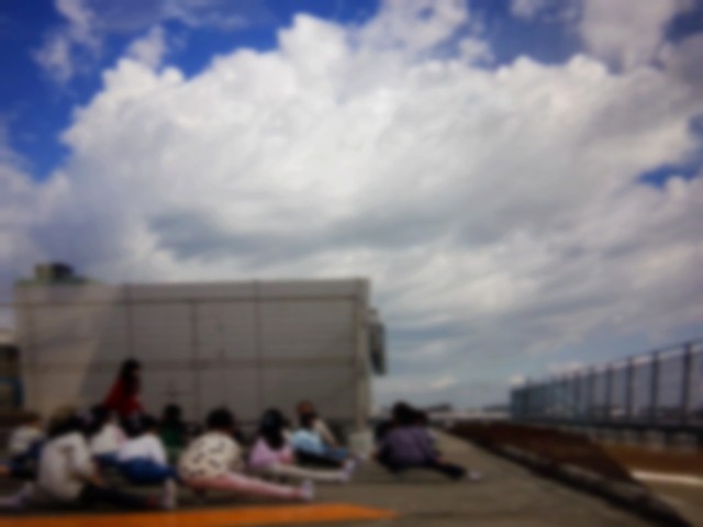 今日はくじらぐもの音読をしに屋上へ行きました。