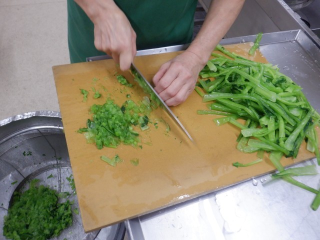 篠崎小には19kgの小松菜が届けられました。その小松菜を使って、「小松菜塩昆布ごはん」「小松菜入りアジメンチ」「ごま和え」を作りました。この献立は、篠崎地区の小中学校の栄養士と話し合って事前に決めた共通メニューです。近隣校に兄弟や友達が通っている人は、同じ献立を食べていますよ。江戸川区が誇る「小松菜」を大切にしていきたいですね。