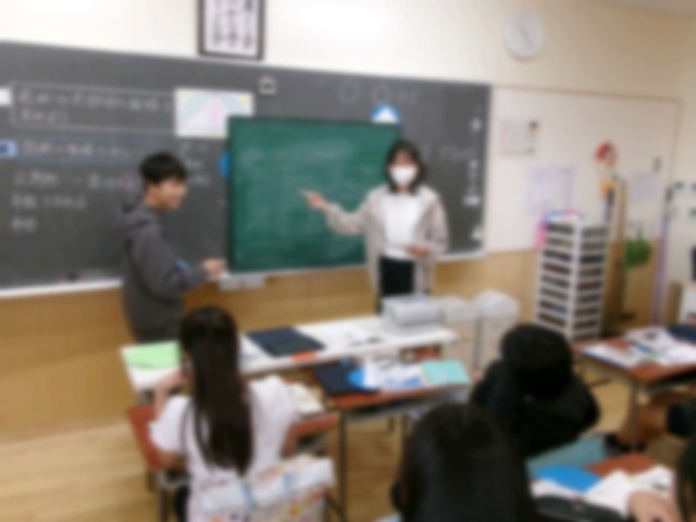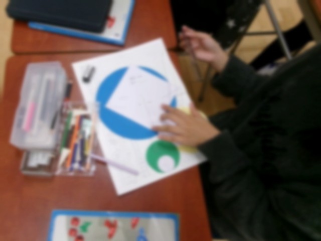研究授業で行った円の面積の公式を活用して、今回は、複雑な図形の面積を求める学習を行いました。子供たちは、具体物や図を活用しながら自分の考えをわかりやすく友達に伝え合うことができました。お互いの発表を通して、多様な考え方に気づき、より深く学ぶ姿が見られました。