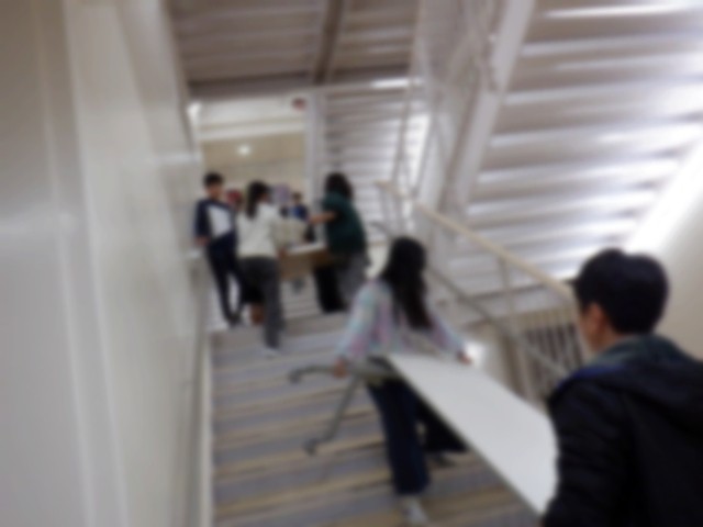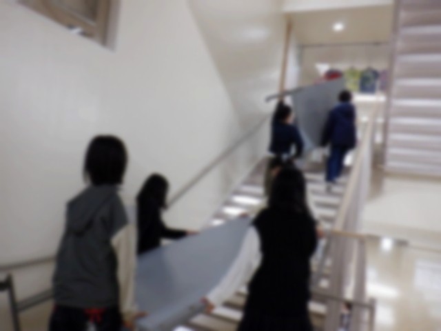 作品を展示するために必要な机やパネルを、友達と協力して各学年の広場に運んでいました。安全に運ぶために声をかけ合ったり、運び方を工夫したりする姿に感心しました。