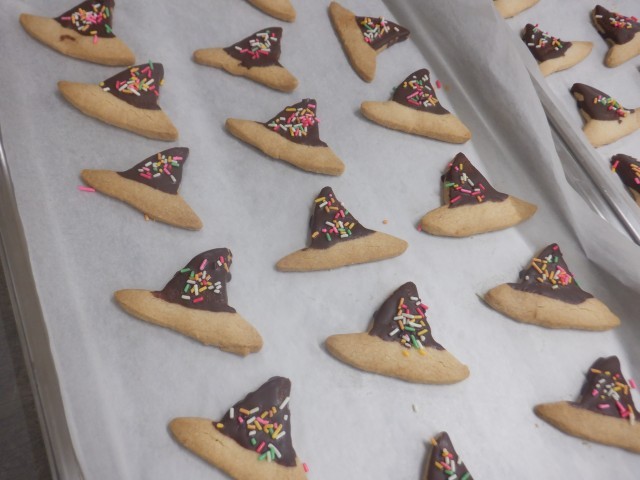 第一弾の今日は、2年生「すてきなぼうしやさん」より「ぼうしクッキー」の登場です。米粉で作ったクッキー生地に、チョコレートをコーティングしてぼうしに見立てました。見た目もかわいいぼうしクッキーができました!