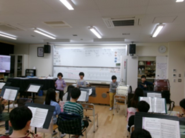 大太鼓・小太鼓を使って、表打ち・裏打ちを組み合わせた伴奏も付けました。お互いの音をよく聞き合って演奏することができました。