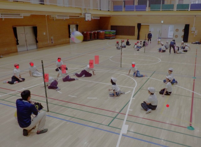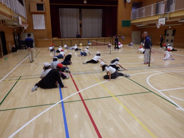 4年生は、総合的な学習の時間に「共に生きる」の学習をしています。前回は聴覚障害者の方と手話体験をしたり、視覚障害者の方からガイドヘルプの仕方を教わったりしました。今回は、区から指導員を招き「シッティングバレーボール」を教えてもらいました。お尻を浮かせて移動してはいけないそうで、前後左右に動くことが大変そうでした。練習をしてから、チームに分かれ試合形式まで行いました。足を動かせない不自由さを感じつつ、楽しみながらパラスポーツを体験できました。