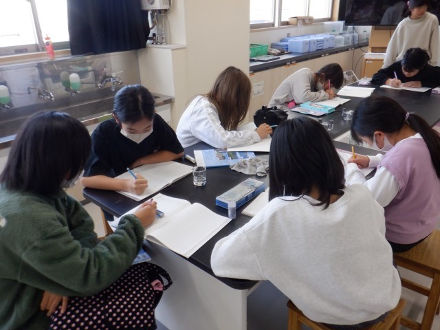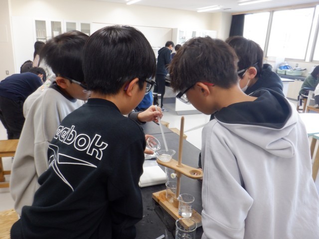 5年生の理科では、「もののとけかた」の学習をしています。今日はろ過の仕方を学習した後に、水溶液からものを取り出す実験をしました。