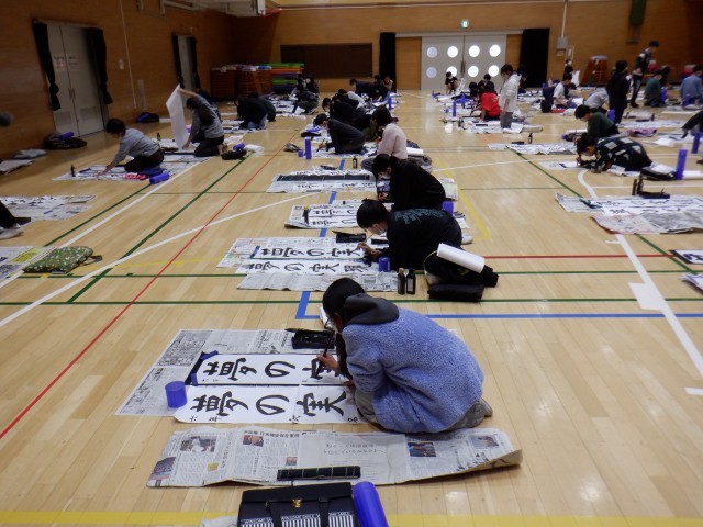 本日3、4時間目に書き初め大会が行われました。一文字ずつ集中して取り組み、心のこもった作品に仕上げることができました。