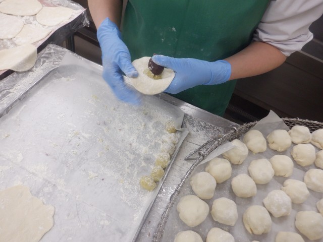 本来のいきなり団子は輪切りのさつまいもを使いますが、給食では食べやすいように、さつまいもあんにアレンジして作りました。650個ものいきなり団子を作るのはとても大変な作業でしたが、給食室一同、心を込めて仕上げました。どのクラスもよく食べてくれたことが、とてもうれしかったです。