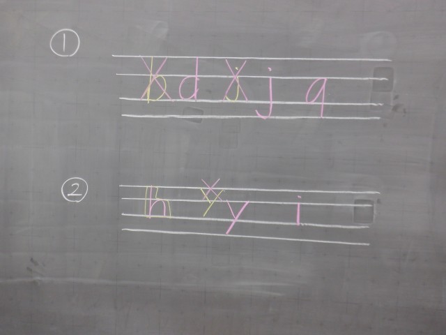 現在、大文字は比較的定着していますが、小文字については”h”や ”j”など、間違えやすい文字も見られます。丁寧な指導を通して、卒業までに確実な定着を目指していきます。