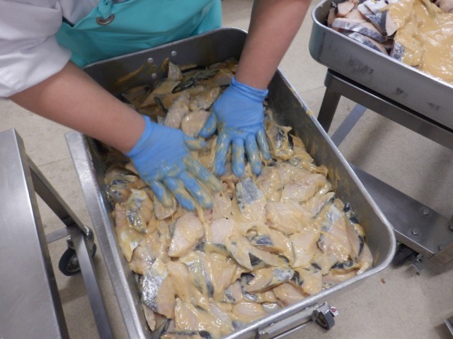 魚屋さんから届いたサワラを使用し、あまみそ焼きを作りました。甘みそとマヨネーズ、しょうゆなどの調味料と合わせたみそだれにサワラをじっくり漬け込み、オーブンで焼きました。身がやわらかく、程よい味付けでごはんも進んだようです。よく食べてくれました。