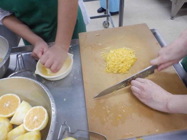 今日の給食では、東京都八丈島産のレモンを使用し、レモントーストを作りました。八丈島レモンは、温暖で潮風の影響を受ける八丈島の気候に育まれ、香りの強さと穏やかな酸味が特徴です。通常のレモンの2~3倍の大きさがあり、皮ごと食べることができます。収穫できる量に限りがあるので、なかなか市場には出回らない貴重なレモンです。