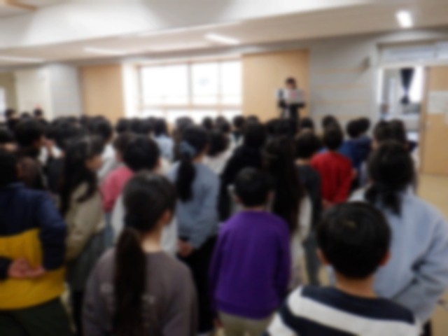 全校朝会がありました 公開日 2026/02/16 更新日 2026/02/16 できごと 2月16日(月)全校朝会がありました。校長先生からは「学年のまとめ」についてお話がありました。残りの登校日数も少なくなりました。学習面や生活面で1つレベルアップして学年が上がるよう指導していきます!!感染症が流行っています。手洗いうがいをご家庭でもお声掛けください。 1年生 2年生 3年生 4年生 5年生 6年生 音楽科 図画工作科 外国語 家庭科 保健 給食 校内研究 農園活動 PTA 学校応援団 学校版もったいない運動