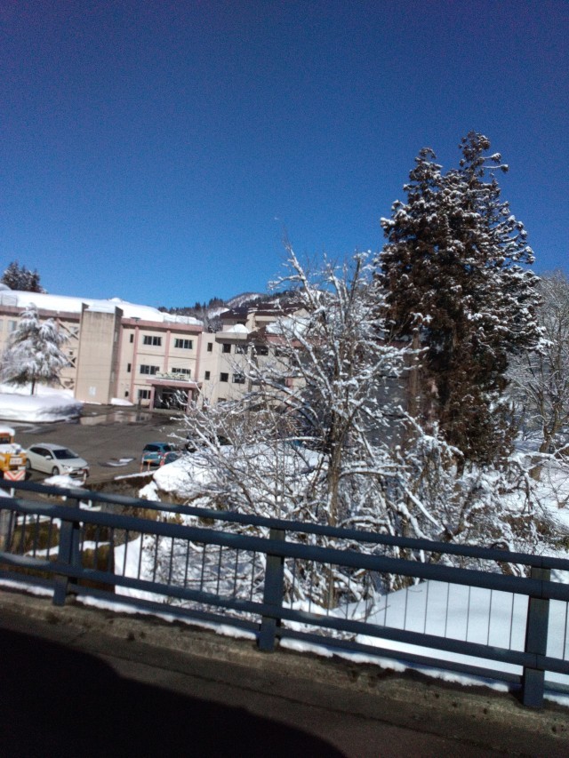 お土産を買った後、閉校式を行いました。お世話になった観光協会の方からは、新潟の天候はだいたい昨日のような灰色の空の日が続くのに、こんな晴天の日が2日もあるなんて…と驚かれました。