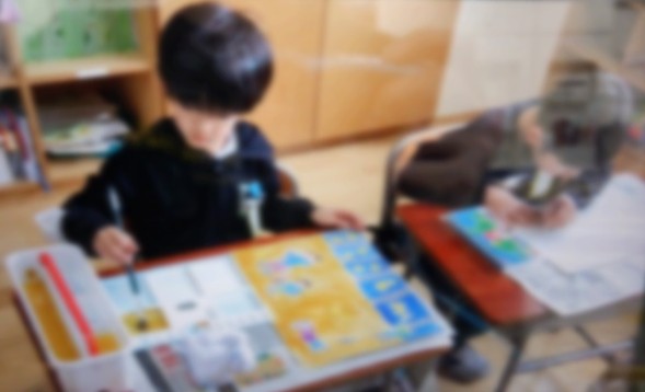 1年生は図画工作の時間に、この1年間の成長を振り返り、その思いをイラストで表現しました。完成した作品の一部は、入学式で飾られる予定です。