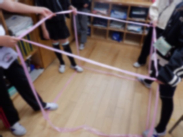 今回は、ビニールテープを使って、1㎥を作りました。