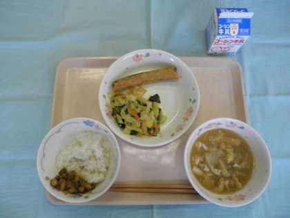 ごはん てっかみそ ししゃものはるまき からしあえ キャベツのみそしる