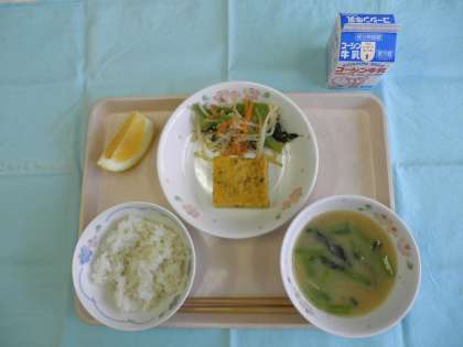 ごはん あつやきたまご ツナとやさいのごまあえ ごじる かわちばんかん