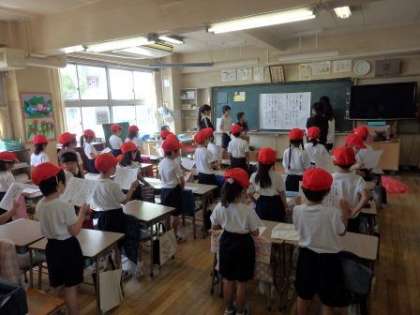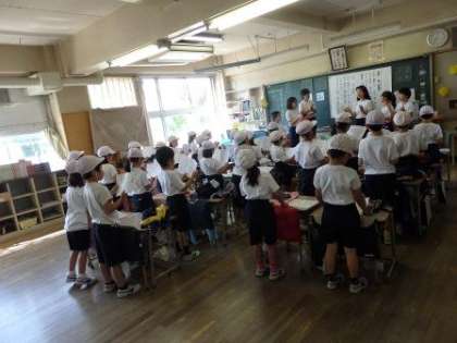 朝の時間に1年生の教室に6年生の応援団の児童が応援歌を教えにきてくれました。運動会に向けて1年生も気合十分です!赤組、白組ともにがんばろう!!
