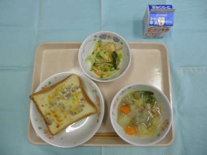 ※食材を煮るときは、具が同じくらいのやわらかさで煮えるように考えながら作るといいです。今日のスープ煮も給食の時間においしく食べてもらえるよう調理員さんが調整して作ってくれました。