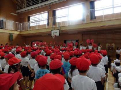 今日は体育館で運動会へ向けて応援集会が行われました。赤組・白組それぞれの応援団長の気合の入ったかけ声からはじまり、体育館いっぱいに元気な歌声が響きわたりました。本番が待ち遠しいですね!!