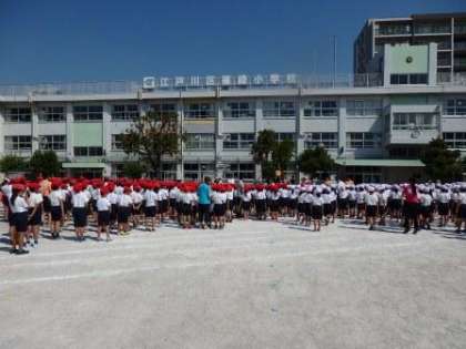 晴天の中、2回目の運動会全体練習が行われました。今日は運動会前最後の練習でした。開会式・閉会式、ラジオ体操、応援、大玉送りの練習をしました。どの学年も1回目の練習よりも気合が入ったがんばりがみえます!本番まであと4日がんばろう!!