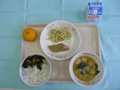 ごはん わかめのおかかいため さけのみりんじょうゆやき ごまあえ