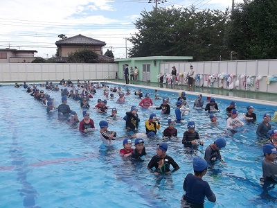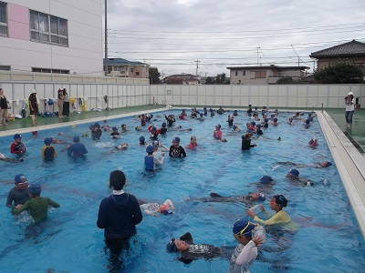 水泳学習の締めくくりとして、着衣泳に取り組みました。服を着ていると思ったように浮けなかったり、泳げなかったりします。そんなときに焦らずに落ち着いて対処する大切さを学びました。お手伝いいただきました、保護者の皆様、ありがとうございました。