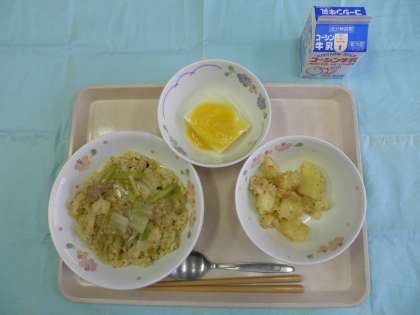 あんかけたまごチャーハン アーモンドこふきいも とうにゅういりミルクかんてん