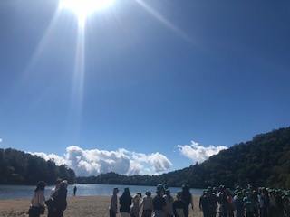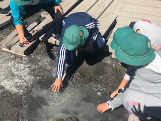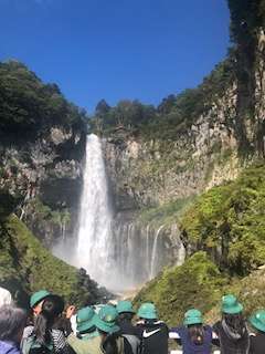 華厳の滝を見て、湯元で源泉に触れました。とてもいい天気です。