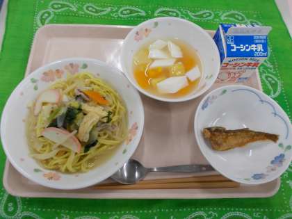 長崎ちゃんぽん 揚げハタハタ一夜干し 杏仁豆腐 牛乳