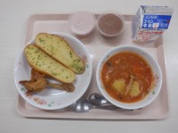 5/16の献立は、鮭ピラフ、豆あじのカレー風味揚げ、チーズツナポテトサラダ、フルーツポンチ、牛乳です。鮭ピラフに使った鮭は、1枚の大きな鮭を給食室で焼いて、ほぐしてからピラフに混ぜました。
